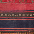 Deux techniques utilisées pour ce Shahsavan : soumak* au centre (à l'origine, devant de la besace) et kilims à bandes (à l'origine, derrière de la besace).