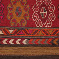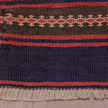 De part et d'autre du soumak, des kilims à bandes rouges et noires étaient à l'origine le dessous de la sacoche.