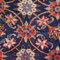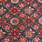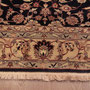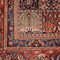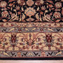 Une belle bordure principale sur un fond bleu marine, riche en motifs floraux, est encadrée de petites bordures aleh abassi** et samovari***. L'ensemble donne un équilibre parfait. Belle polychromie.