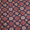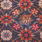 Sur un champ bleu marine sont représentés une multitude de motifs floraux qui dessinent discrètement un médaillon central. Une bordure ivoire fleurie est encadrée de deux petites bordures bleu ciel.
