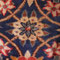 Ce Kashan est l'exemple même de cette tradition. Au centre, deux médaillons bleu et beige sont insérés dans un médaillon bleu marine. Quatre écoinçons, rappelant le médaillon central, ainsi que des bordures au motif 'hérati' ou 'samovari' (fleurs) encadrent le champ du tapis se composant d'un multitude de fleurs et de rinceaux sur un fond rouge profond.