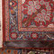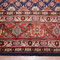 Beau sarough au motif traditionnel. Un médaillon bleu et ivoire se détache sur un fond rouge. Quatre écoinçons sont en accord avec une large bordure bleue marine entourée de différentes bordures plus petites (hérati*, göls ...). On peut apprécier sur l'ensemble du tapis, les fleurs, les rinceaux et les arabesques qui font la particularité de nombreux sarough.